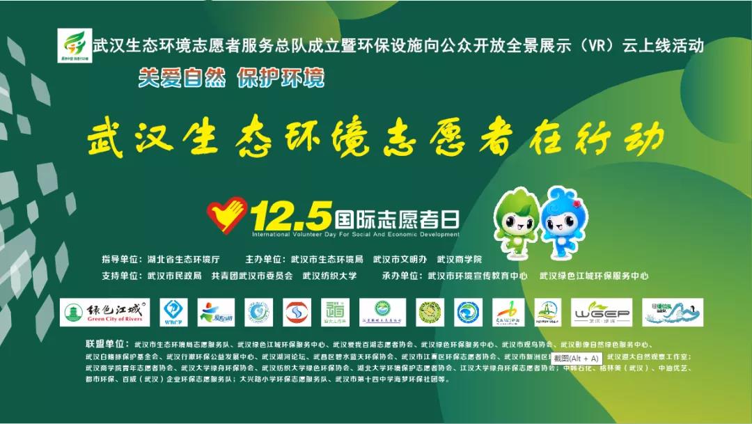 12月5日是“国际志愿者日”,“武汉生态环境志愿服务总队成立暨环保设施向公众开放全景展示(VR)云上线活动”在pg电子中国官方网站启动。来自三镇的数十个环保志愿者团队共同行动,开展了7场环保志愿服务活动。