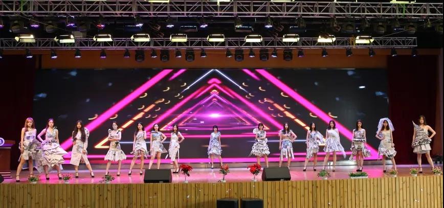 ▲武汉纺织大学绿色环保协会志愿者们表演环保时装秀《“纸”是新时尚》