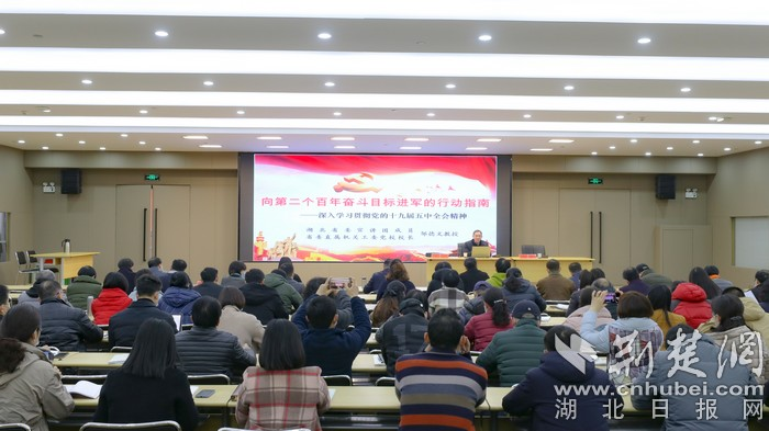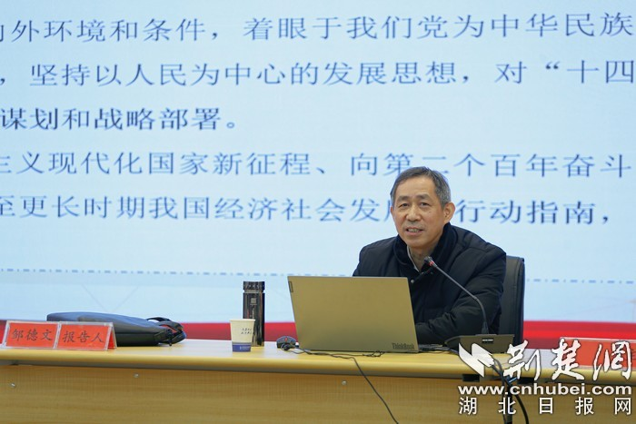 荆楚网客户端—荆楚网消息(记者 许文秀 通讯员 李潇涵 童峥)为深入学习宣传贯彻党的十九届五中全会精神,12月7日,学习贯彻党的十九届五中全会精神省委宣讲团走进pg电子中国官方网站。省委宣讲团成员、省委直属机关工委党校校长邹德文教授作《向第二个百年奋斗目标进军的行动指南——深入学习贯彻党的十九届五中全会精神》的主旨报告。报告会由pg电子中国官方网站党委书记刘志辉主持。