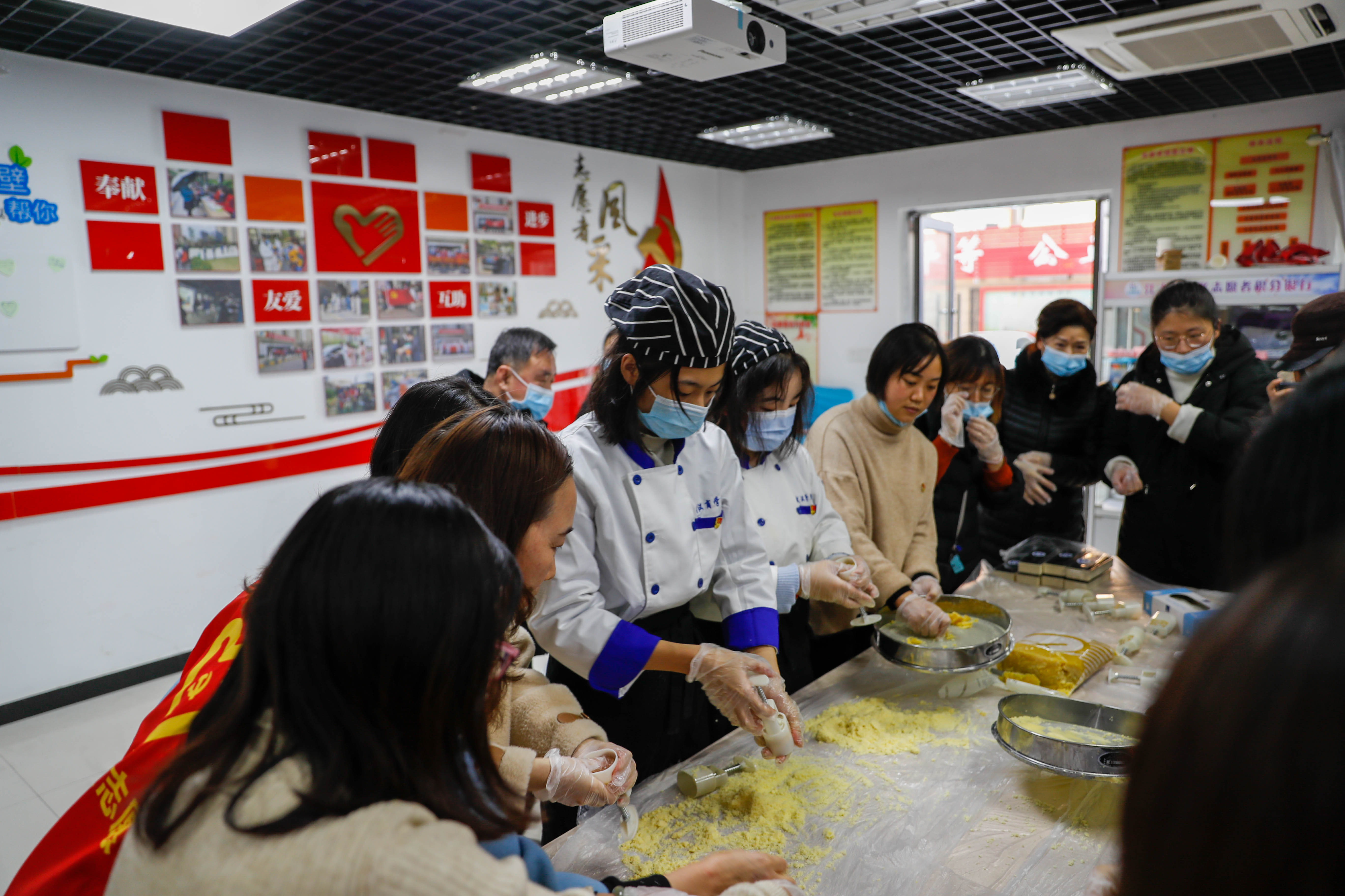 下沉党员为居民制作绿豆糕。