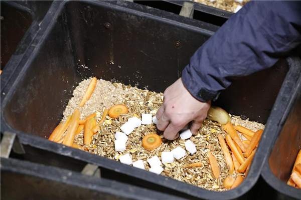 准备“团年饭”期间,不少闻到香味的马儿纷纷探出头来,靠后的马儿“雅典娜”时不时地踹门,催促着团年饭的制作进程。据吴家喆介绍,马儿“团年饭”的主配料由基础饲料和精饲料组成,基础饲料包含麸皮、豆粕、燕麦等成分,相当于人类的米饭,精饲料由玉米片、颗粒粮、油、盐以及一些马匹所需的微量元素构成,相当于人类的各式菜品。在添加了苹果和胡萝卜后,吴家喆和同学们还准备了团年饭的“甜蜜武器”——方糖。“平时只有训练表现好的马儿,才能吃到一颗方糖。”吴家喆说,“今天每匹马差不多可以吃到八块,估计要高兴坏了。”