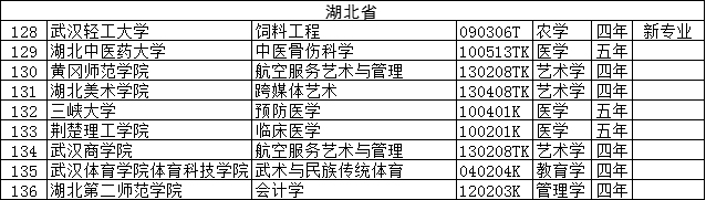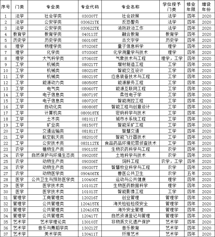 37个专业被列入普通高等学校