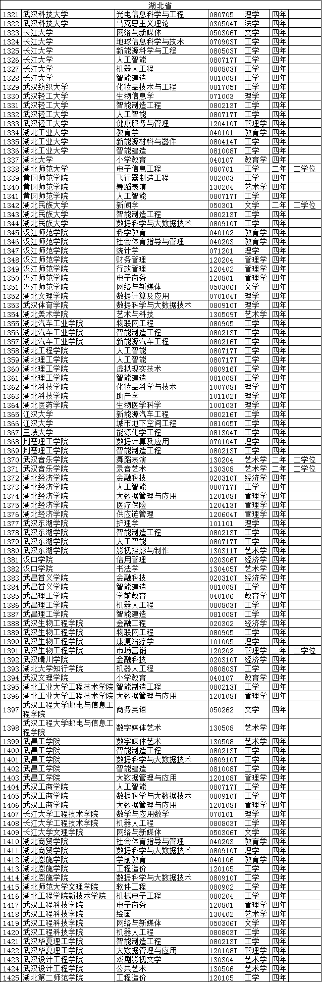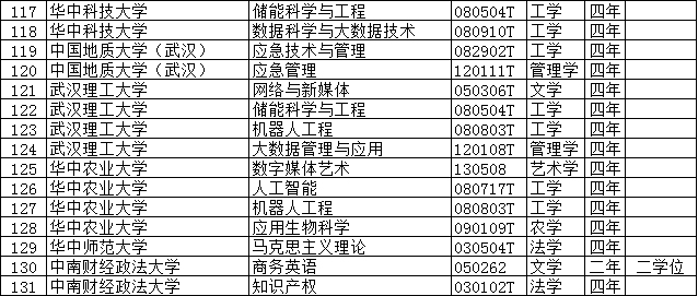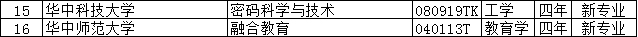 列入普通高等学校本科专业目录的新专业名单