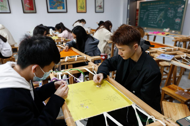“刺绣用的针很细,比平时用的缝衣服钉扣子的针短很多,穿针很不容易。”提到刺绣,该校艺术学院2018级服装与服饰设计一班学生湛港明侃侃而谈,作为班里为数不多的男生,说起以女性为主的刺绣,湛港明对自己的作品信心十足:“传统印象里,刺绣好像是女孩子的专属,但我认为男生也能大胆尝试,而且能做得更好。”