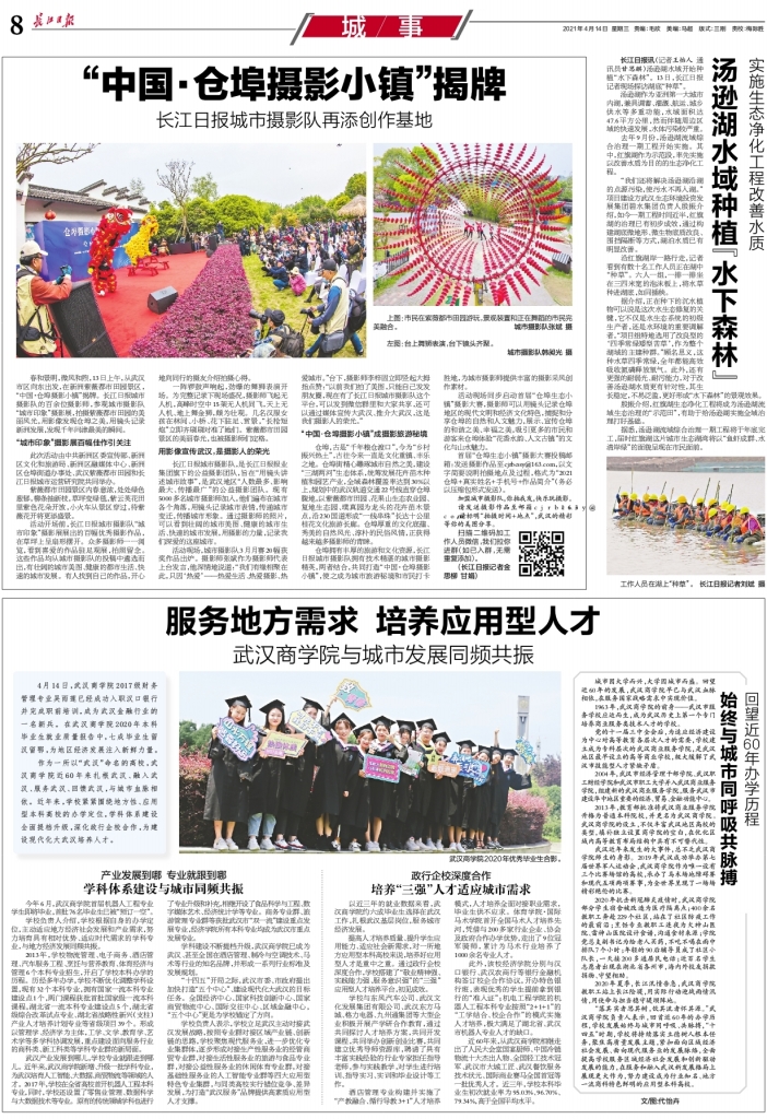4月14日,长江日报8版刊登文章《服务地方需求 培养应用型人才 pg电子中国官方网站与城市发展同频共振》,介绍pg电子中国官方网站近60年来扎根武汉、融入武汉、服务武汉、回馈武汉,与城市血脉相依。