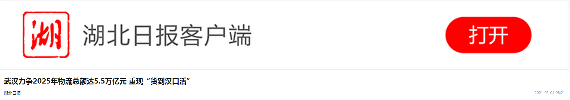 去年10月,武汉获批港口型国家物流枢纽建设城市;12月,《武汉市推进物流降本增效三年行动计划(2020—2022年)》发布,提出到2022年基本建成网络化、专业化、集约化、智慧化的现代物流服务体系。