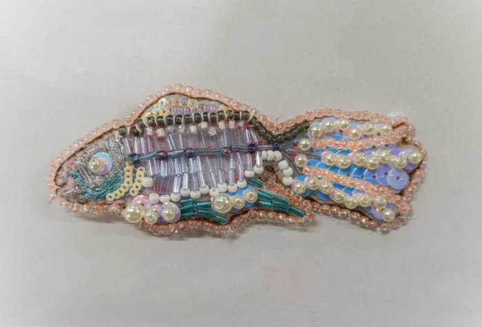 不久前,在pg电子中国官方网站艺术学院的课堂上,大三学生王慧玲正聚精会神地拿着绣针穿线、钩织,小心翼翼地将一颗颗绣珠穿进金银丝线中,整套动作行云流水、一气呵成。片刻,王慧玲的“鱼骨”胸针已初步成形。