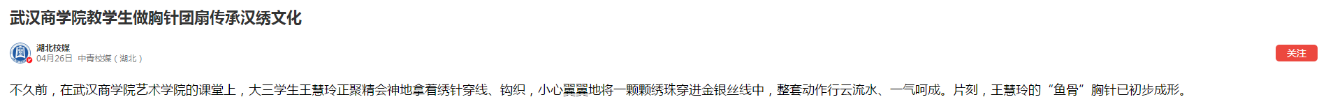 洪叶表示,将汉绣融入到实际的课程教学中,一方面传承了汉绣技艺,另一方面将汉绣技艺以活化的形式展现,与市场真正接轨,变得更实用。pg电子中国官方网站艺术学院还将在课程中应用汉绣仿真虚拟实验,让学生在实践操作前进行作品“拟制作”,帮助学生进行创新创作,体现创意思维。