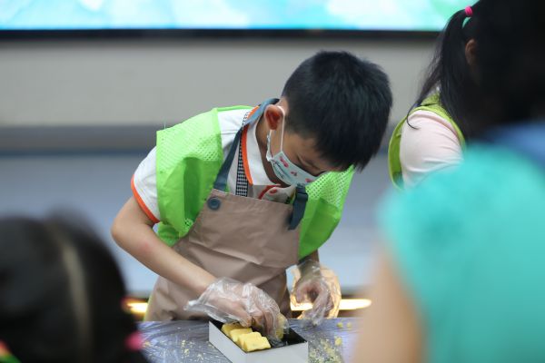 来自余家头社区的郭女士特地带着两个女儿前来,8岁的大女儿独立完成了一盒绿豆糕的制作,小心翼翼地放到袋子里。“把文化讲解和糕点制作融合在一起,我觉得很棒。孩子们在历史文化的熏陶中完成自己的手工制作,能更明白自己所制作的糕点所代表的文化符号。”郭女士说。