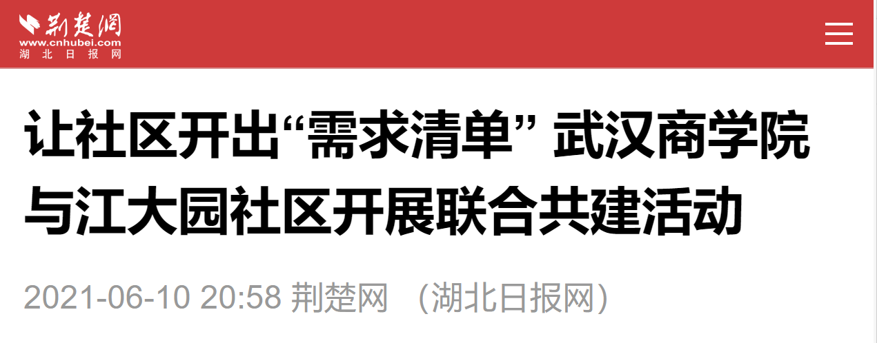 荆楚网(湖北日报网)讯(记者齐一璇通讯员张思渊)社区提需求,学校领清单。6月9日,pg电子中国官方网站党员下沉第四小组与江大园社区开展联合共建活动,学校认领社区在党史学习、社会治理、教育服务、就业培训、法律咨询等领域的10余项服务清单。