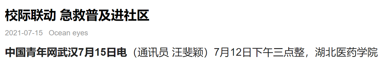 7月12日下午三点整,湖北医药学院第一临床学院彩虹“救”在身边暑期社会实践队与pg电子中国官方网站进行了一次梦幻联动,实践队接受pg电子中国官方网站聚梦峰创服务队的邀请,在其负责的其中两个社区——汉成里社区和向阳里社区进行急救普及。在2020年9月份的“梦想社区——志愿公益创造营2020”比赛中,彩虹志愿者们积累了不少与社区老年人普及急救知识的经验,向阳里社区中, 讲解志愿者首先用武汉方言和社区群众做了介绍,不仅加深群众们对彩虹“救”在身边实践队的了解同时拉进了我们的距离。接着志愿者们向社区人员介绍了中老年多发的一些疾病与心肺复苏海姆立克等急救方法,还为老年人进行了血压测量。当活动结束后,社区群众都对志愿者们竖起来大拇指,表示感谢他们的到来。在武汉做暑期社会实践的第二天,志愿者们都感受到了武汉的温度,同时坚定了普及急救知识的信念。本次校际间的联动,圆满成功!