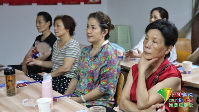 图为志愿者向社区群众实体讲解如何寻找主动脉。中国青年网通讯员汪斐颖摄