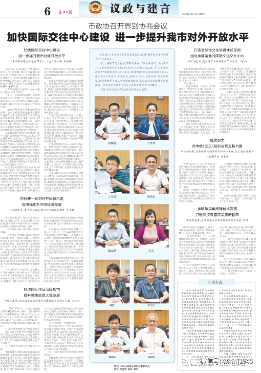 《长江日报》6月22日第6版“议政与建言”刊发了两人在市政协界别协商会议上的发言摘要。
