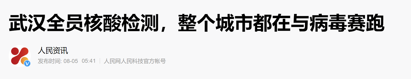 消息在武汉人的朋友圈迅速传播,一边点赞“这就是武汉速度”,一边承诺“全员核酸,我们无条件配合”。三伏天进行全员核酸检测,长江日报记者见证着整个城市都在与病毒赛跑。