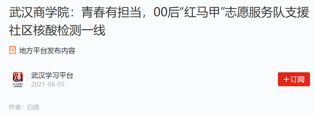 团队负责人蔡文豪介绍,聚梦峰创志愿服务队多年来一直坚持为武汉的50多个社区空巢老人提供志愿服务,对社区情况比较熟悉,也有充足的社区服务经验。“武汉就是我们的家!作为大学生,能够为武汉的核酸检测出份力,心里很自豪。”蔡文豪说,团队微信群将大家报名时的誓言保留在群通知里,日夜兼程万众一心,在志愿服务中践行青春担当。