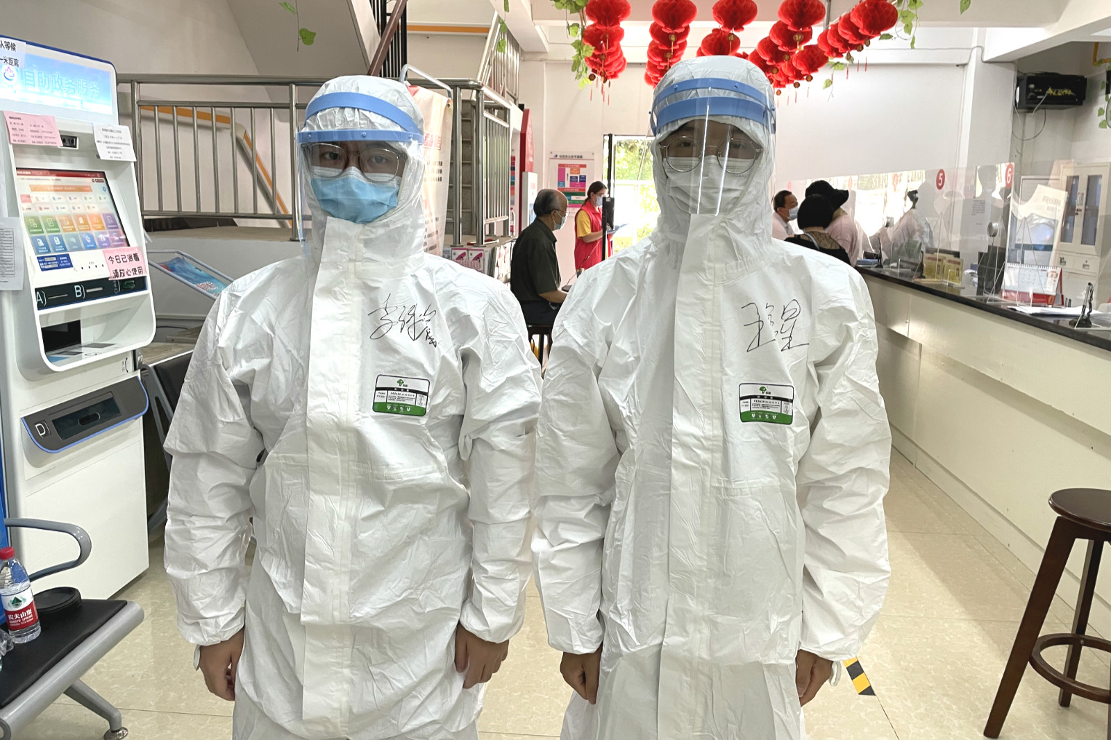 第一次穿防护服的王金星,主要工作是配合医护人员进行核酸采集试剂装箱、医疗废弃物处理和消杀工作等。“医护人员太辛苦了,能做些力所能及的事,很值得!”王金星说,穿上防护服不到半个小时,汗水就顺着身体往下淌,人被热得透不过气来,但看到医护人员镜片后的汗水,他觉得自己这点辛苦都不算什么。
