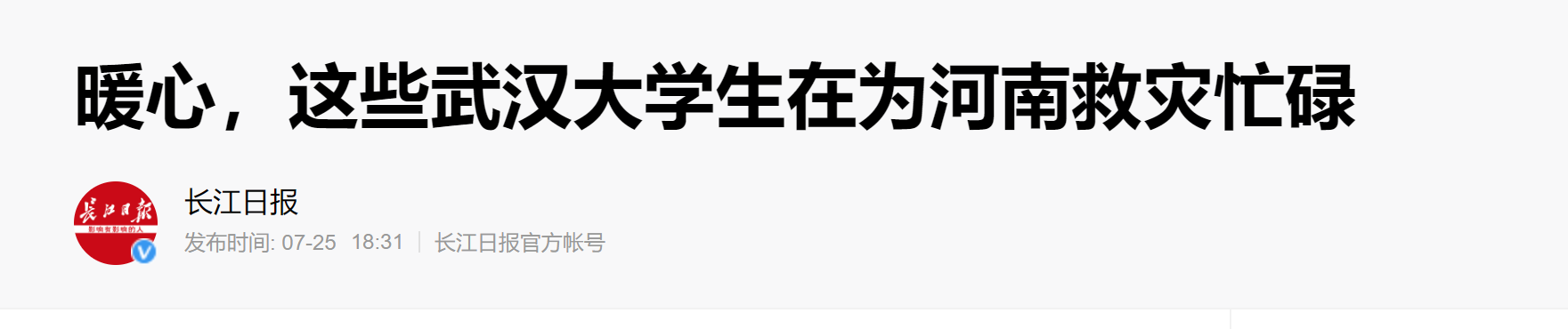 长江日报7月25日讯7月25日,4位在家乡河南参与防汛救灾的华中农业大学学生告诉长江日报记者,目前,郑州、新乡、焦作、漯河4地已不再降水,迎来晴朗天气,所在区域内居民生活已基本恢复正常。连日紧张有序的救援行动中,一批来自武汉的大学生身影,为灾情中的河南带去了一抹青春的亮色。