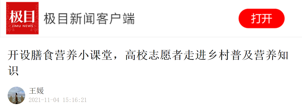 马赛村村委会主任朱小娥说,大学生们来到这里后,马赛村逐渐形成了健康饮食的良好氛围。“他们利用制作的短视频、宣传手册和宣传海报,让更多居民学习和了解到有关膳食营养的知识;教幼儿园的孩子们动手制作一些面点食品,纠正了孩子们挑食的坏习惯。”谈到村子里的改变,朱玉娥表示,还有热心的村民特意把自家的空田地拿出来供他们做“劳动教育实践田”。