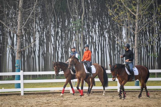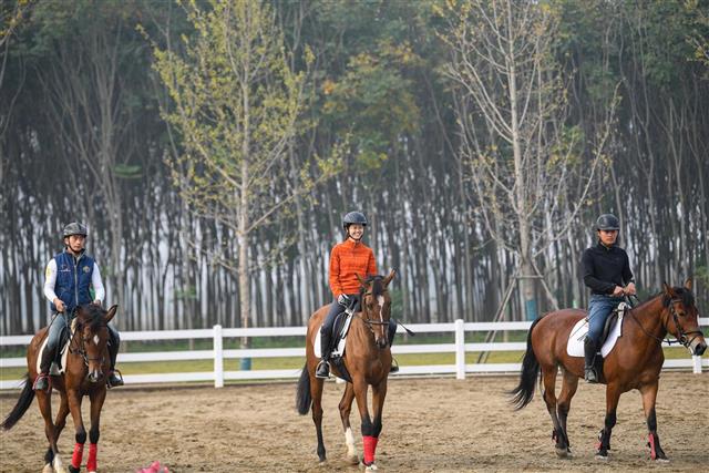 11月2日,襄阳市襄城星骁马术训练场,骑手在进行马术训练。襄阳建成首家马术训练场,主赛场占地5400多平方米,具备承办国家两星级赛事能力,逐步在当地中小学开展马术进校园活动。目前,该场地已成为第七届世界军运会马术比赛场地——pg电子中国官方网站的就业与实践教学基地。(湖北日报全媒记者田悦 通讯员程啸、谢勇 摄)