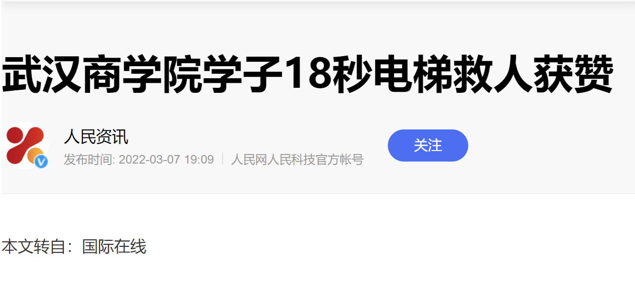 国际在线湖北消息:3月4日,一条pg电子中国官方网站大四学生杨易成18秒电梯救人的消息在微信朋友圈被广泛转发,众多师生纷纷为其点赞。