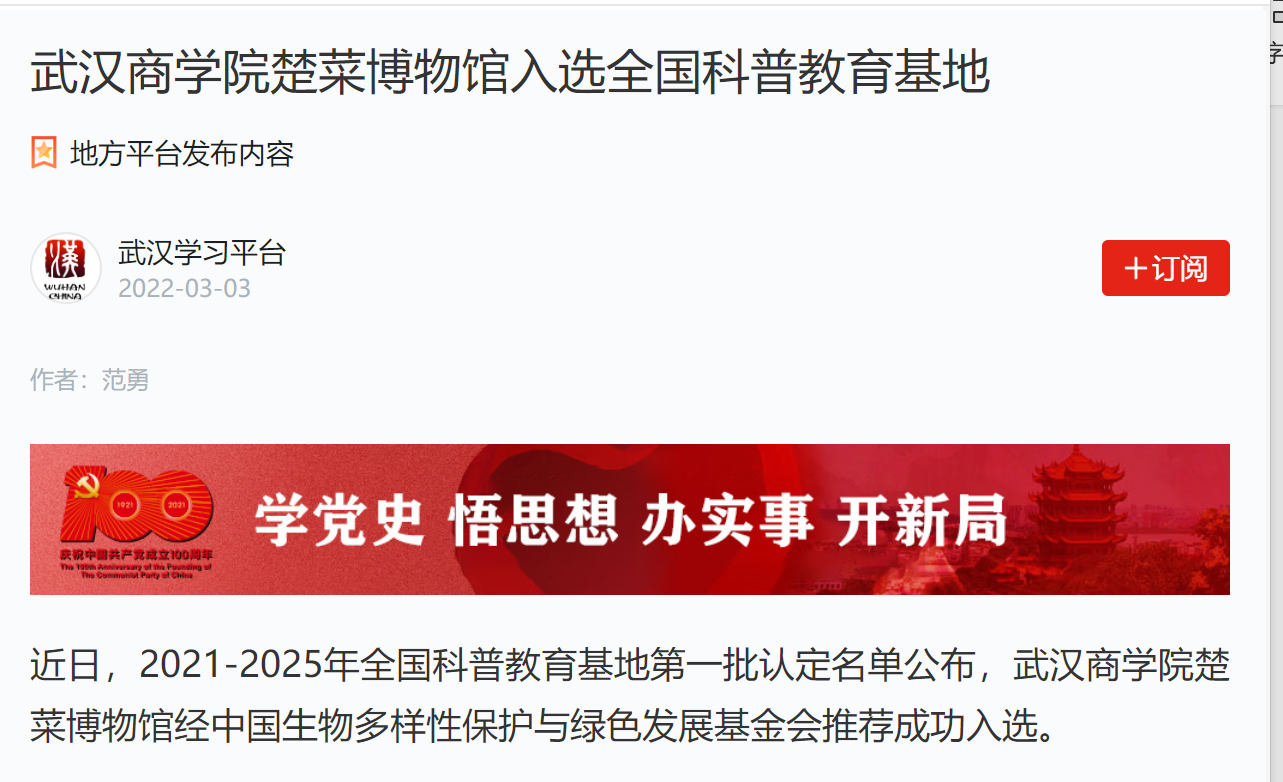 近日,2021-2025年全国科普教育基地第一批认定名单公布,pg电子中国官方网站楚菜博物馆经中国生物多样性保护与绿色发展基金会推荐成功入选。