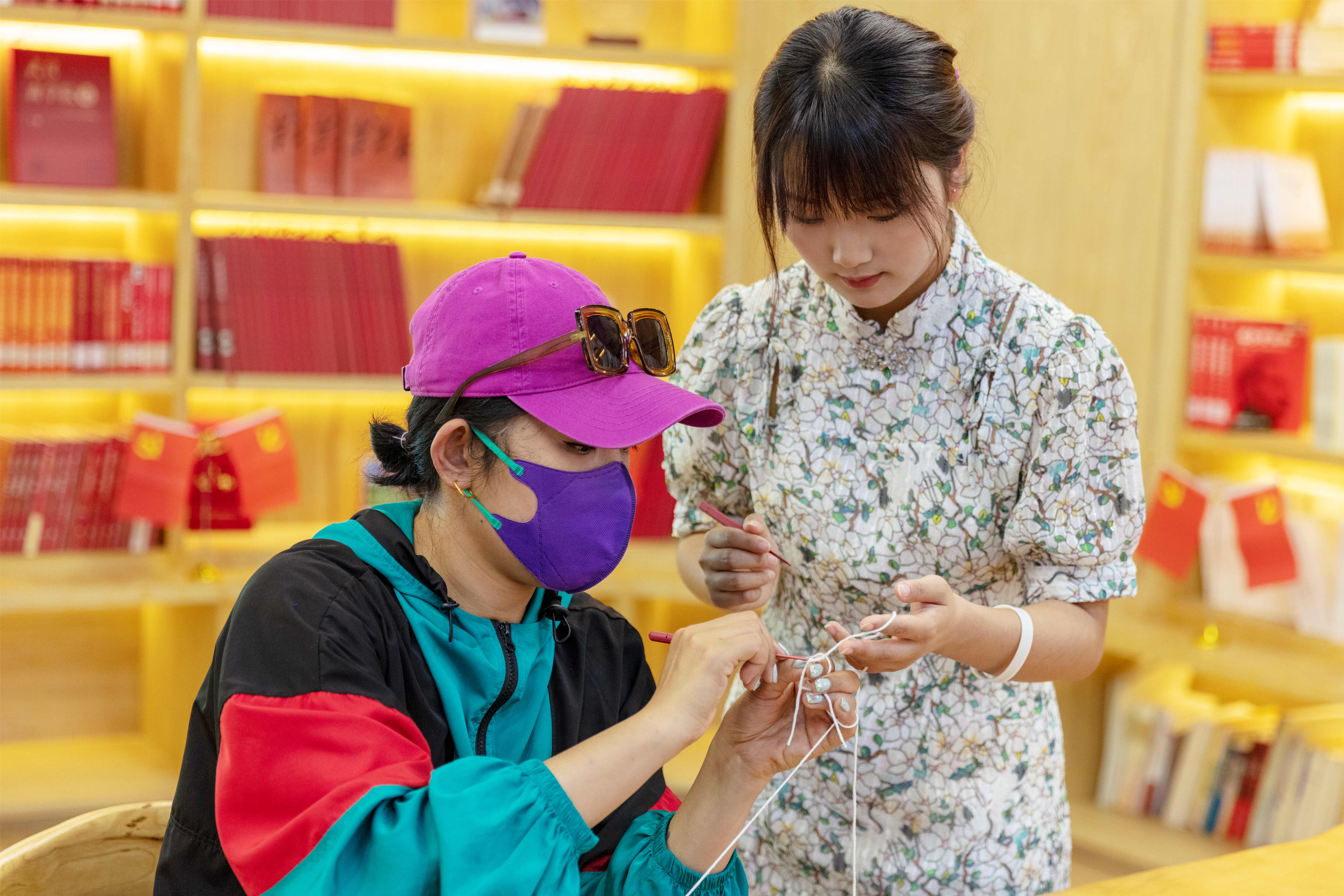 武汉非物质文化遗产毛线钩编技艺第四代传人凃洁带领学生体验传统钩编技艺
