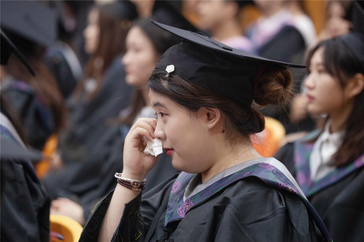 在现场连线毕业生代表环节,来自各个学院的十名学生代表分享了自己四年来的所感所得。马术专业的郭航站在熟悉的马场前与大家热情地打着招呼,虽然无法到达现场,心与心的距离却无限贴近。旅游管理学院卜丹伟的妈妈是一名援藏教师,本次作为家长代表参与了线上连线,情至深处,她也落下泪来,鼓励儿子要对新事物永远满怀期待,以一句“扎西德勒”为所有毕业生送上最真诚的祝福。