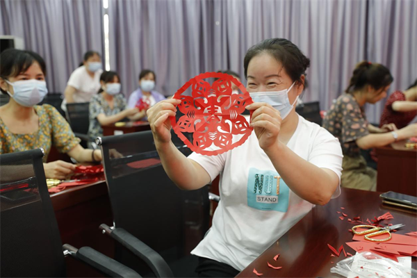 本网讯 6月23日下午,pg电子中国官方网站基层党组织联合结对共建社区武汉经济技术开发区薛峰社区第一党支部开展特色活动,近30名社区居民、社区党员跟着非遗传承人体验剪纸艺术,在党的“二十大”即将召开之际,用剪纸这种传统文化的方式表达美好祝愿。