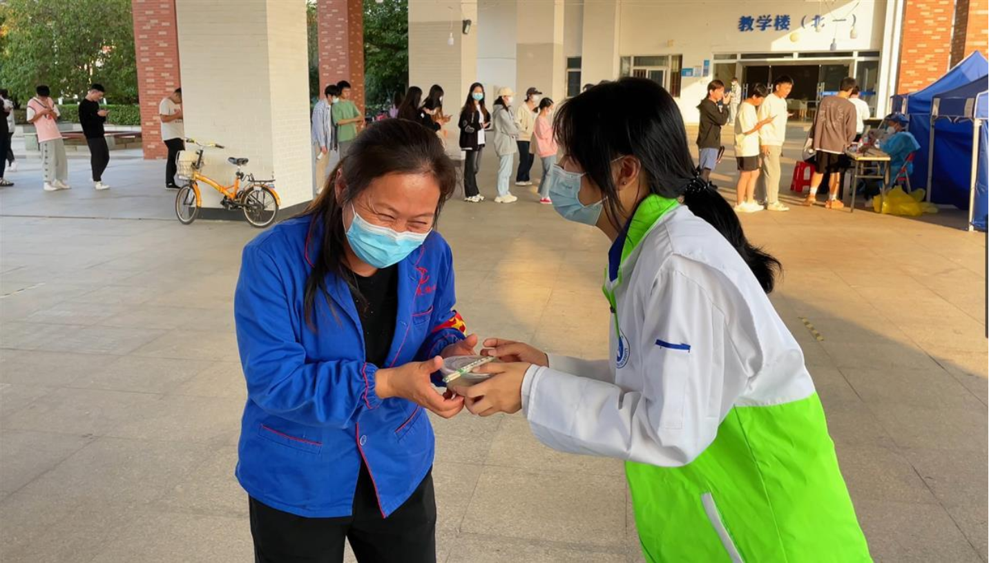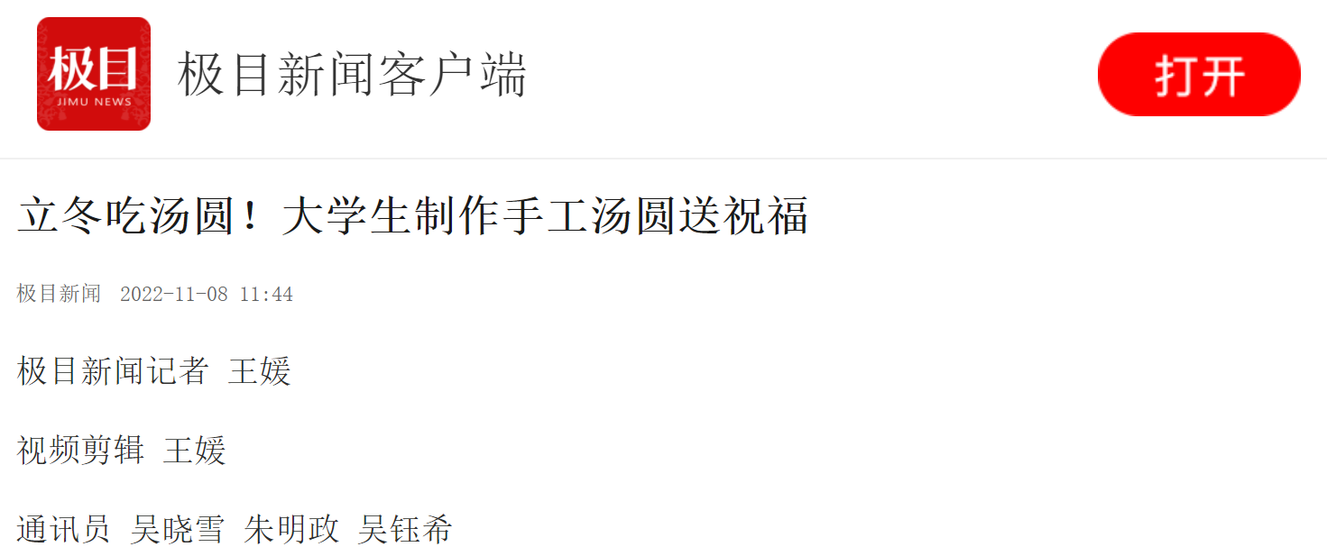 “你们辛苦了!谢谢你们的辛苦付出,今天立冬,来碗汤圆吧!”汤圆煮好了,志愿者们盛好一碗碗香甜可口、热气腾腾的汤圆,逐一送给每一位在校工作人员。在pg电子中国官方网站当了四个月保安的吴波,来自湖北省咸宁市,这是他第一次在学校过立冬节气,收到同学们亲手做的汤圆时,吴波激动地说:“吃了学生们亲手包的汤圆,心里暖暖的!”
