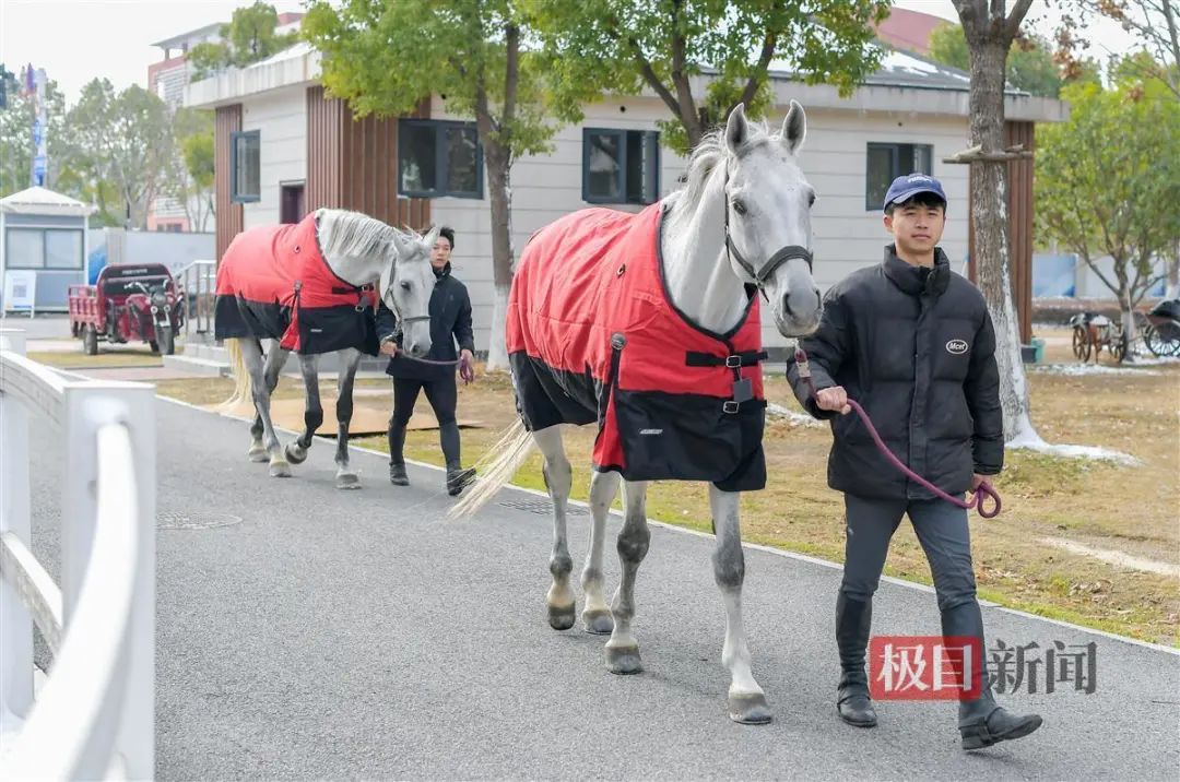 “新年新气象,我们特别为马儿选择了红衣,梳上了帅气的发型,希望它们新的一年也过得红红火火,有个好彩头。”学生蔡行说。