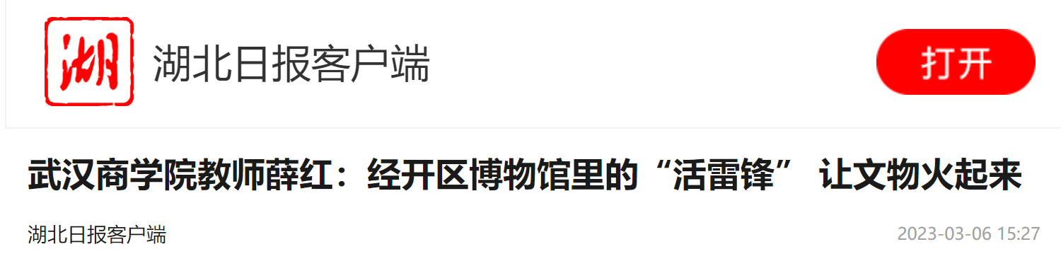 “薛红老师利用自己的专业知识,让文物‘活’了起来,让荆楚故事更动听。”湖北省博物馆社教部钱红主任介绍,薛红老师不仅来志愿讲解,还帮助我们培训志愿者,通过薛红老师的“传帮带”,把荆楚优秀文化传播到基层,让更多人了解优秀历史文化,增强民族自信。钱红说:“十几年来,薛红老师风雨无阻来湖北省博物馆义务讲解,可以说是我们省博志愿队伍中的活雷锋。”
