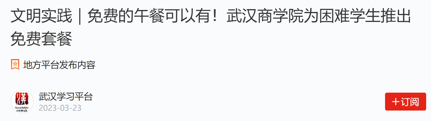 据了解,免费窗口每天供应500份免费午餐,学生可在就餐时间领取两菜一汤。食堂汪经理介绍,“免费窗口”是公益性质的,设立的初衷是为了更好地照顾家庭困难的学生,学生们无需花钱,就可以免费吃上一顿午餐。