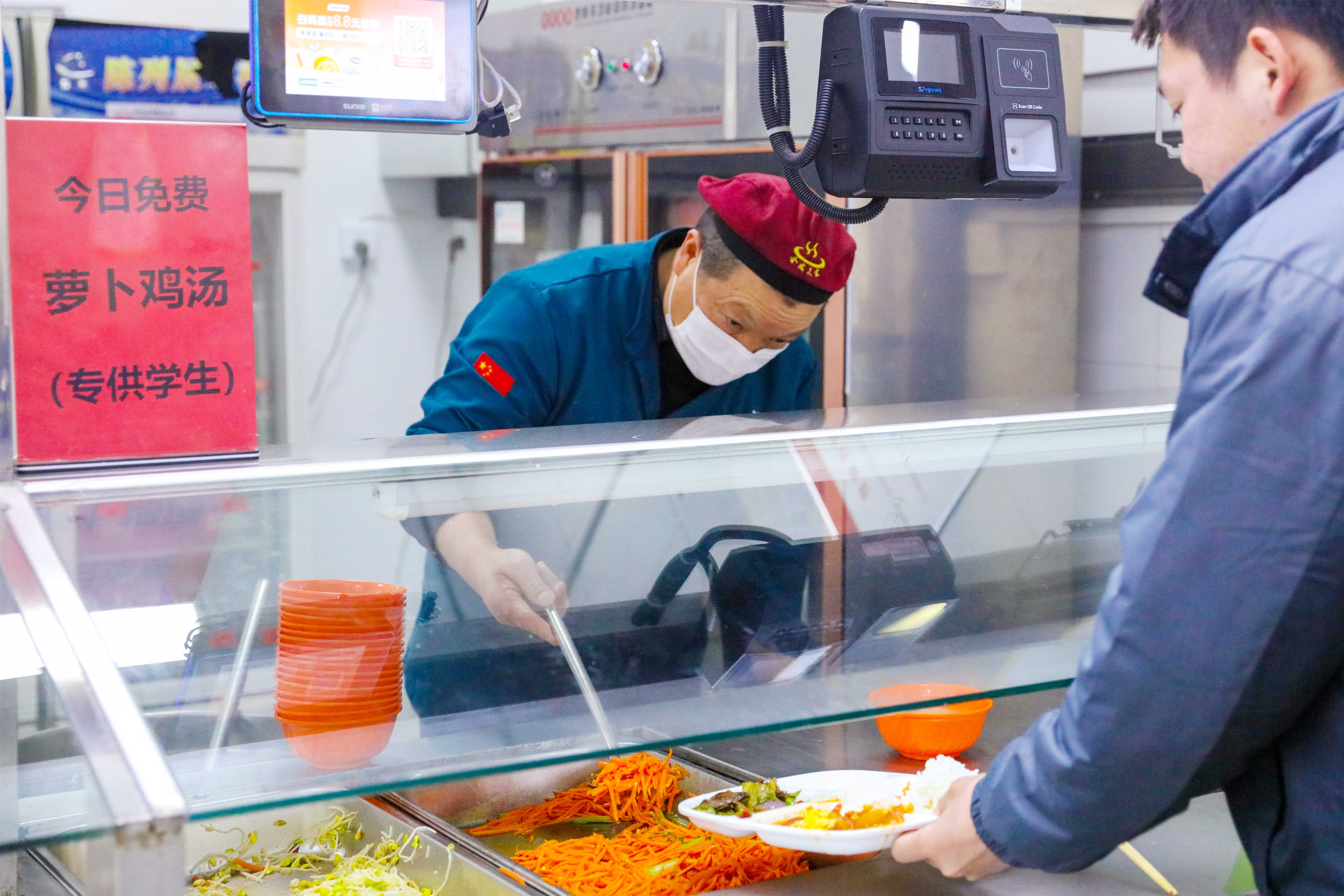“今天的菜是清炒时蔬、手撕包菜,例汤是萝卜鸡汤!”3月22日中午11点30分,pg电子中国官方网站食堂的免费窗口迎来了第一批学生,学生们依次排队打饭,期待着午餐的菜品。
