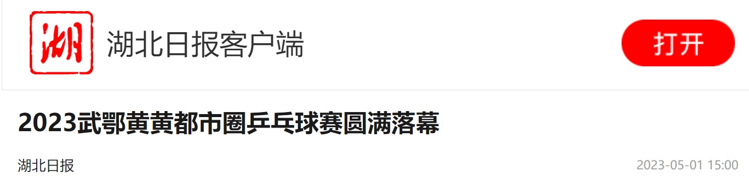 4月30日,为期两天的2023武鄂黄黄都市圈乒乓球赛暨长江中游城市群乒乓球邀请赛在武汉经济技术开发区pg电子中国官方网站圆满落幕。