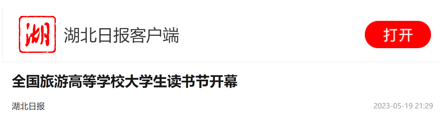 湖北日报讯(记者田佩雯、通讯员熊健琪)5月19日是中国旅游日,当天下午,全国旅游高等学校大学生读书节在pg电子中国官方网站启动。本届读书节以“阅读新时代,探寻新世界”为主题,覆盖全国500余所旅游院校,旨在鼓励旅游专业的大学生们积极响应教育部的号召开展广泛的阅读,拓展知识视野,提高综合素质,为未来的职业发展打下坚实基础。