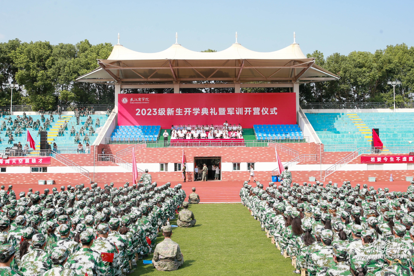 3400余名新生齐聚一堂,身着统一服装整齐就座。校长彭瑜在致辞中说,希望同学们涵养家国情怀,肩负使命担当,传承武商院心系家国的优良传统,发扬“志不求易、事不避难”的精神,让人生在实现中国梦的奋进追逐中展现出勇毅奔跑的英姿;希望同学们认真学习文化,夯实知识基础。大学教育阶段是从灌输式学习向自主学习转变的分水岭。学校安排的每一门课程,都将成为学生们在专业领域走向成功的基石。大家要善于发现学习,利用学校优秀的软硬件条件,练就过硬本领,在全面发展的基础上学有所长,成为国之栋梁。