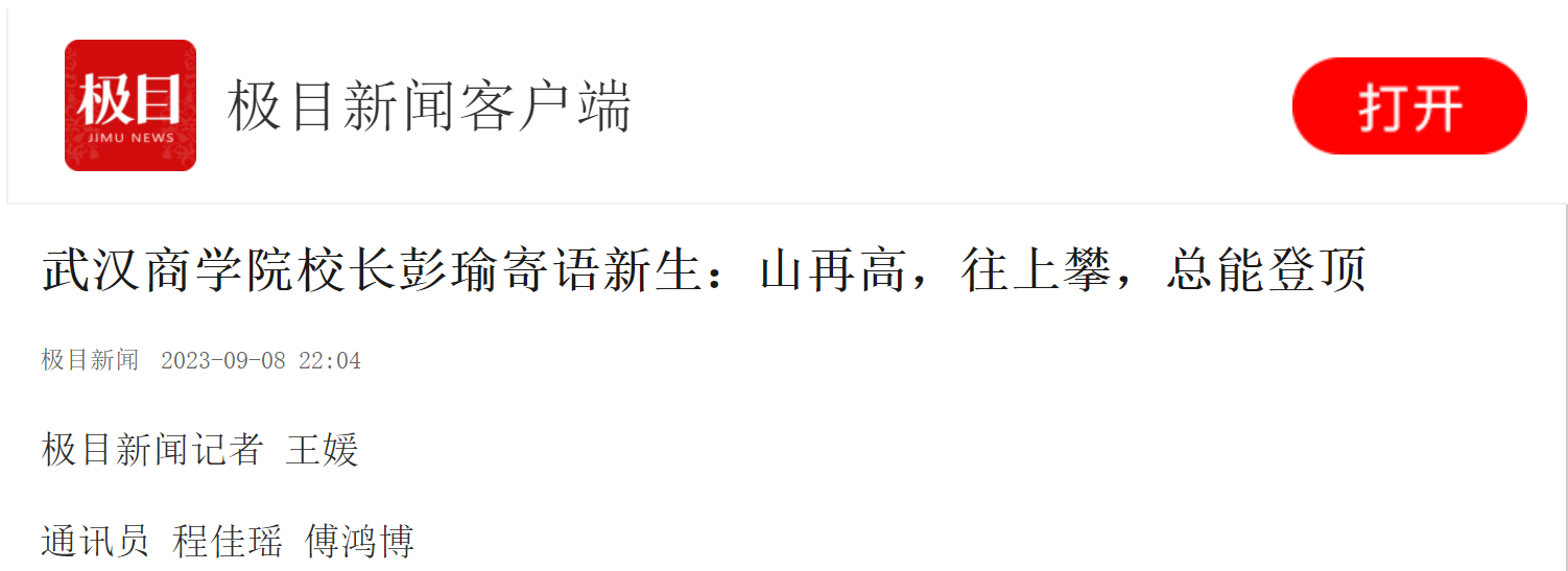 伴随国旗的冉冉升起,3400余名新生齐聚一堂,身着统一服装整齐就座。校长彭瑜在致辞中说,希望同学们涵养家国情怀,肩负使命担当,继续传承武商院心系家国的优良传统,发扬“志不求易、事不避难”的精神,让人生在实现中国梦的奋进追逐中展现出勇毅奔跑的英姿;希望同学们认真学习文化,夯实知识基础。大学教育阶段是从灌输式学习向自主学习转变的分水岭,学校安排的每一门课程,都将成为你们在专业领域走向成功的基石。除了认识专业知识体系、掌握专业操作技能之外,还应关注专业的历史和未来,比较专业的内在和外延,最终形成自己对所学专业清晰而深刻的认知;希望同学们把握一切机会,全面提升能力,著名企业家雷军在上学时候需要凭票上网,他会反复练习打字速度,上机前提前在纸上写好代码。在同学们身边也有许多这样利用一切机会提升自己的例子,大家要善于发现学习,利用学校优秀的软硬件条件,练就过硬本领,在全面发展的基础上学有所长,成为国之栋梁。