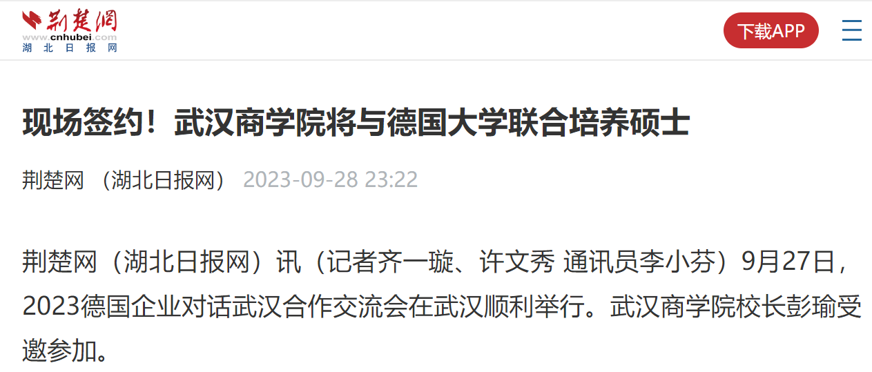 荆楚网(湖北日报网)讯(记者齐一璇、许文秀 通讯员李小芬)9月27日,2023德国企业对话武汉合作交流会在武汉顺利举行。pg电子中国官方网站校长彭瑜受邀参加。
