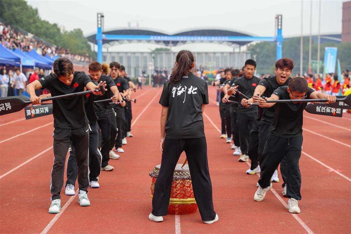 除了马术方阵,该校各学院的创意方阵也颇有看头。伴随着一阵轰鸣声,机电工程学院“雷霆车队”亮相。据了解,该车队在今年5月获得中国汽车工程学会巴哈大赛一等奖。开幕式现场,舞狮表演激情澎湃,高跷队的学生身踩高跷依然灵动自如,击剑队现场展示了让人屏气凝神的击剑秀,龙舟队队员个个精神饱满,用整齐划一的动作完成旱地龙舟……