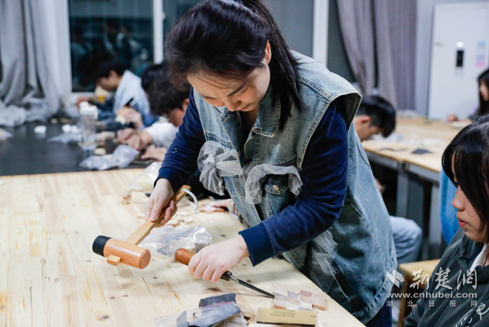 在张洁瑕看来,木艺是一门沉下心来慢慢打磨的工匠课。这节公选课上,学生能够通过木艺制作增强动手能力和创造力,同时沉下心来陶冶工匠的高尚情操。