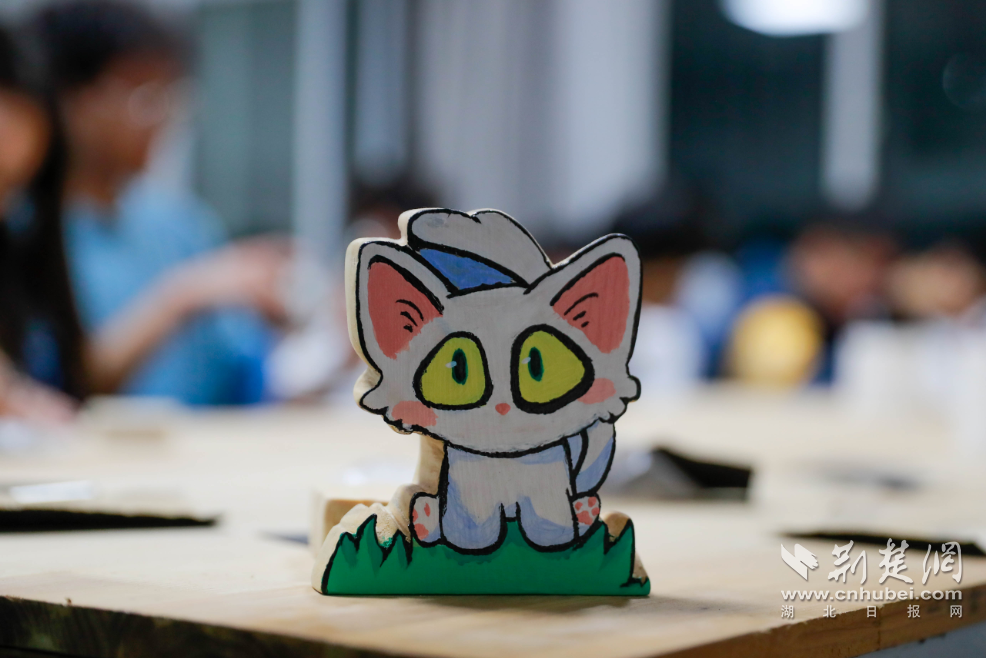 “雪花”、动画片《海绵宝宝》的“小鱼”、振翅而飞的“大雁”,简单的木块在学生手里不断变换着形状。经济学院的林诗怡选择制作“小猫”杯垫,她先是初步拼接出小猫形状,然后进行细节改动,最后用胶水将木块粘接在一起,一只“小猫”便活灵活现地出现了,“每次都很期待上这节课,感觉手工制作的方式出现在课堂上十分新奇!”