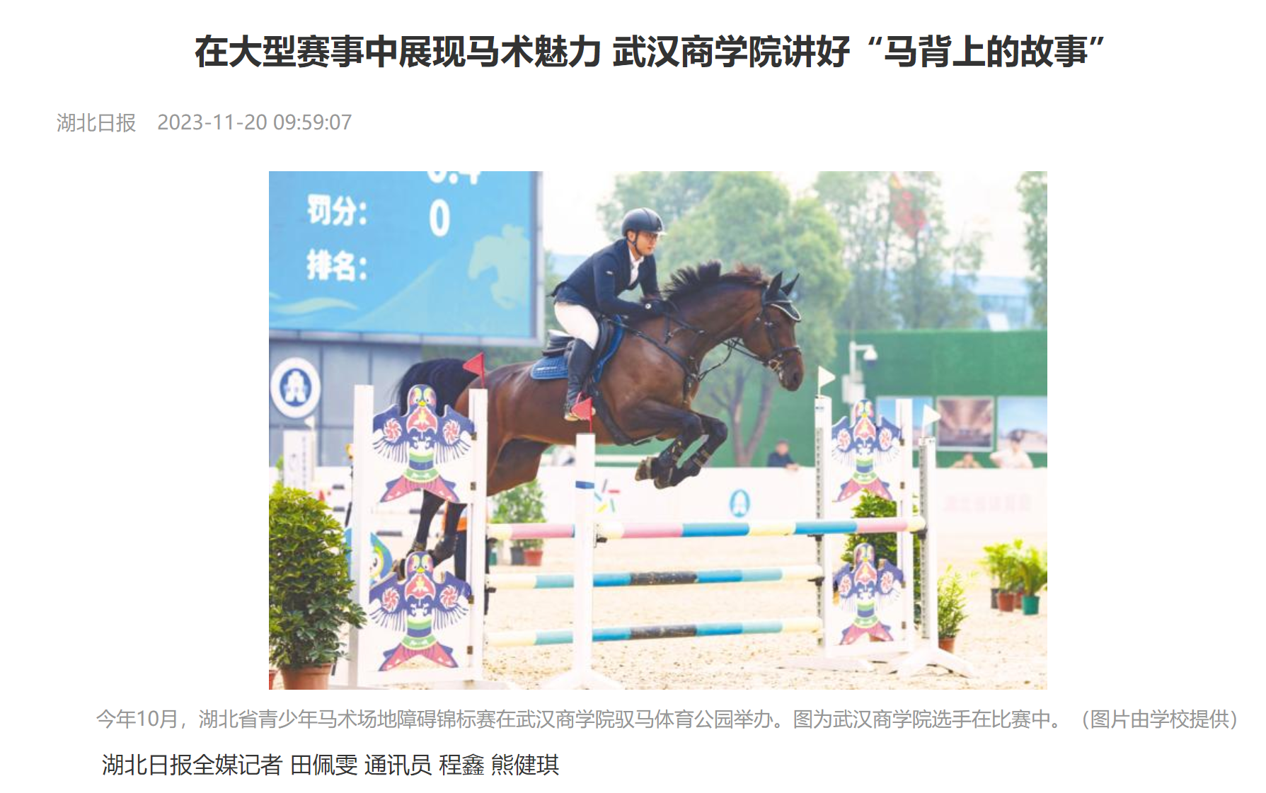 今年3月,pg电子中国官方网站获得湖北省高等学校教学成果奖。在李要南看来,能够获得湖北省高等学校教学成果奖,对马术人才培养具有创造性的重大意义。“这不仅是对前期教学成果、师资队伍建设、科学研究、学生培养的肯定,更是启发后人更加坚定开拓,与时代、与产业发展,与中长期教学规划相结合,开展马术培养奠定了基础。同时也推动了学校与国际化人才培养市场的结合进程,推动中国马术走向世界,促进中国一流迈向世界一流。”