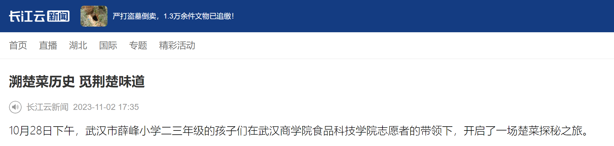 孩子们还没进校参观,校史馆的讲解员小姐姐就早早地在门口等待薛峰小学孩子们的到来了。讲解员小姐姐耐心地带领孩子们参观了各种楚菜模型,给孩子们讲解了楚菜的历史和故事。