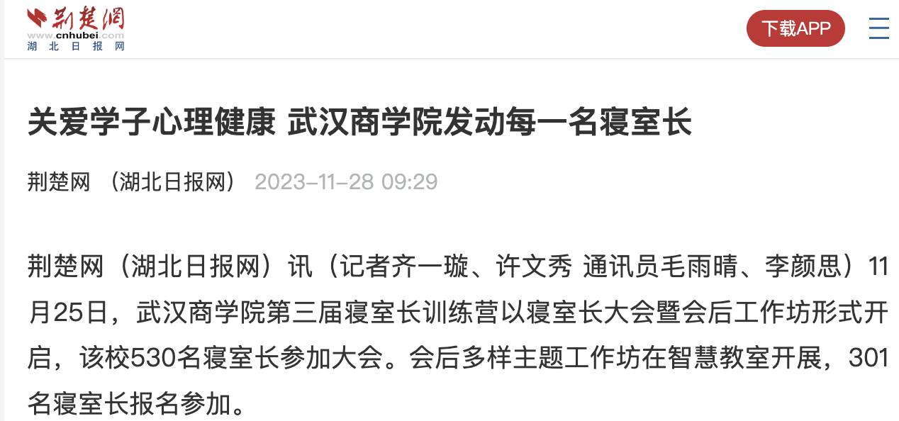 荆楚网(湖北日报网)讯(记者齐一璇、许文秀 通讯员毛雨晴、李颜思)11月25日,pg电子中国官方网站第三届寝室长训练营以寝室长大会暨会后工作坊形式开启,该校530名寝室长参加大会。会后多样主题工作坊在智慧教室开展,301名寝室长报名参加。