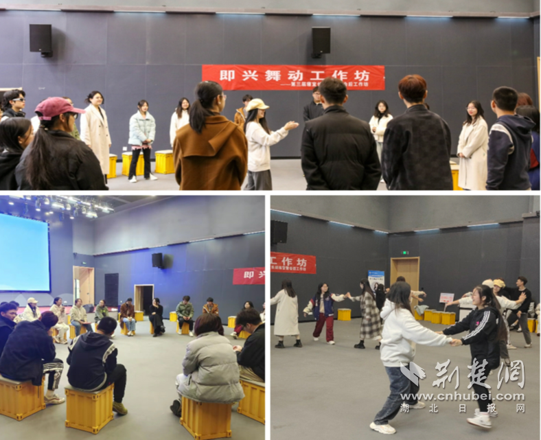 在即兴舞动工作坊,学生们通过自由舞动发挥身体的动态正念效果,聚焦当下,聚焦自我身心感受,在慢速舞动中觉察身体与呼吸,逐渐抛却对外在视线的在意,放下对自我的比较、挑剔,自由随心舞动舒展身心。双人互动、共舞部分是轮流体验关系中的带领和跟随,体验关系中的责任与安全感,并在此基础上完成属于两个人的舞动作品,提升学生躯体自信、表达自信。