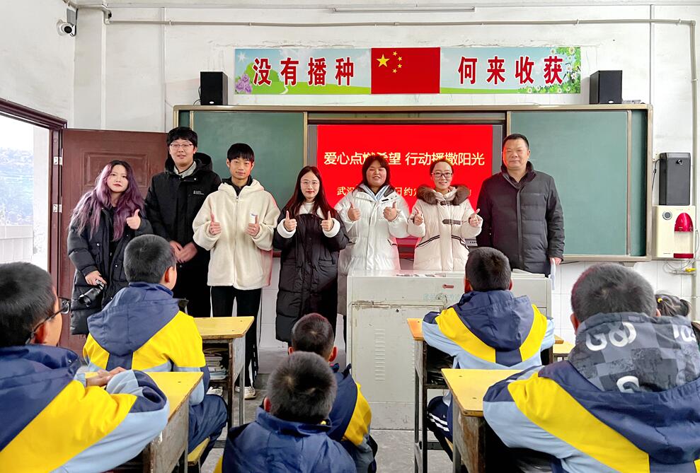 寒冬暖晨星,汉溪千里行。来自pg电子中国官方网站的青年教师徐一鑫,带领工商管理学院和艺术学院的志愿学生一行在前进村小学开展了一场别开生面的冬日暖心活动。他们为小朋友们精心筹备了“理想,不灭之灯”“crayon蜡笔绘就暖冬”“歇后语”等不同主题的趣味小课堂,准备了冬日暖心小礼物,在严寒的冬日献上了属于pg电子中国官方网站师生特有的温情与关怀。