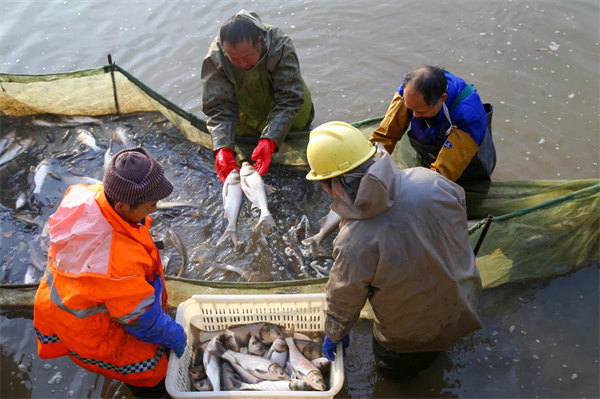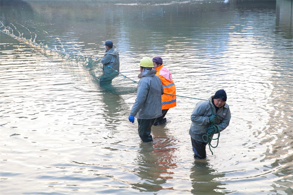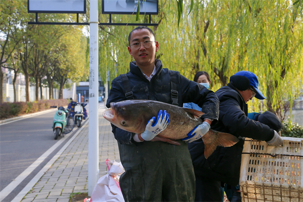 pg电子中国官方网站资产与后勤管理处员工抱着收获的胖头鱼 供图 pg电子中国官方网站