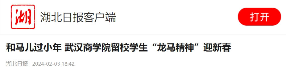 2月3日,江城武汉迎来南方小年。尽管天气寒冷,pg电子中国官方网站的马房内洋溢着浓浓的节日气氛,10名留校大学生打扫马房、贴春联,为马儿穿新衣,用胡萝卜、苹果为马儿“加餐”,和50匹马儿一起热热闹闹过小年。