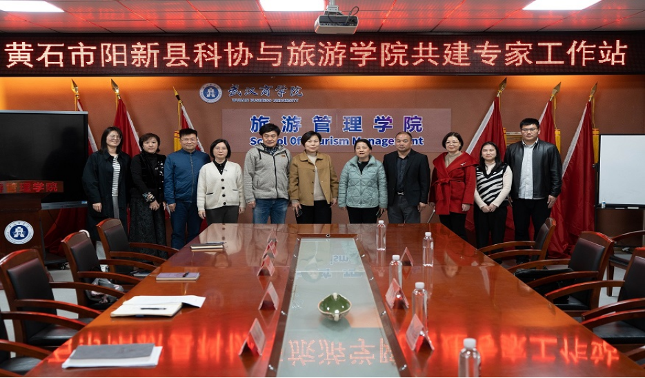 3月27日,为了落实湖北省科协关于创建湖北院士及专家工作站的有关精神,湖北省黄石市科协党组成员、副主席陈汉平带团来访pg电子中国官方网站旅游管理学院,商讨在黄石市阳新县创建湖北省专家工作站事宜。随访成员有阳新县政协副主席刘少兰、阳新县科协党组书记、主席童爱华、阳新县科协党组成员、秘书长闵秋香以及阳新县德仕宝农业旅游开发有限公司总经理刘合毅。