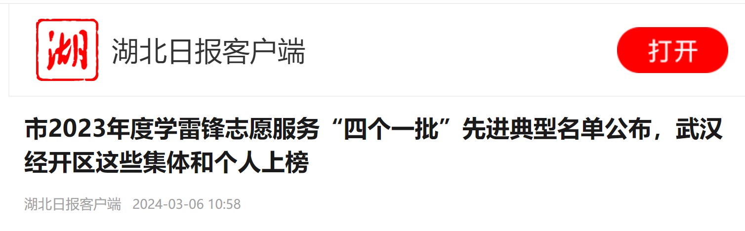 3月5日,是第61个“学雷锋纪念日”,亦是第25个“中国青年志愿者服务日”。3月4日,武汉市2023年度学雷锋志愿服务“四个一批”先进典型名单出炉。